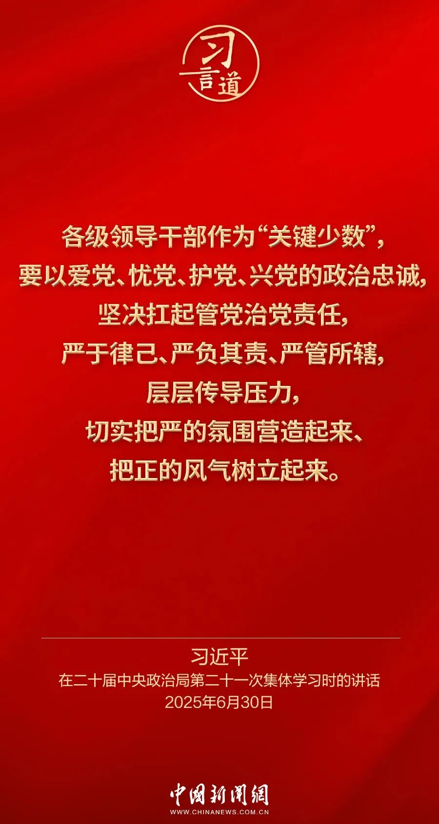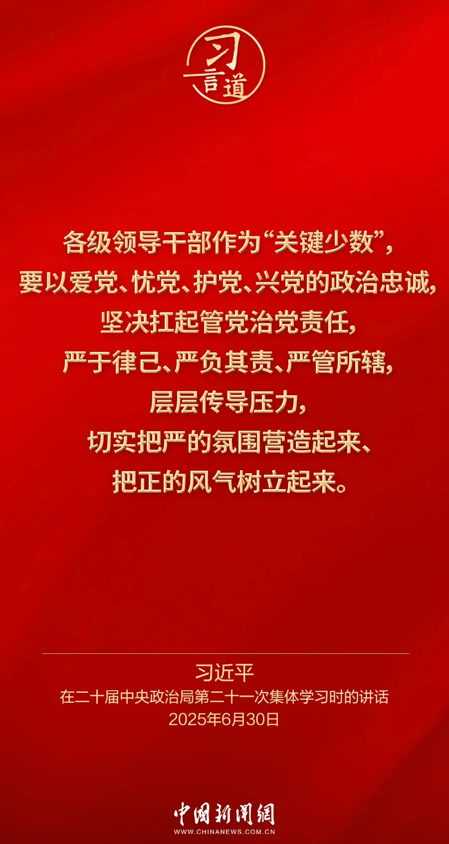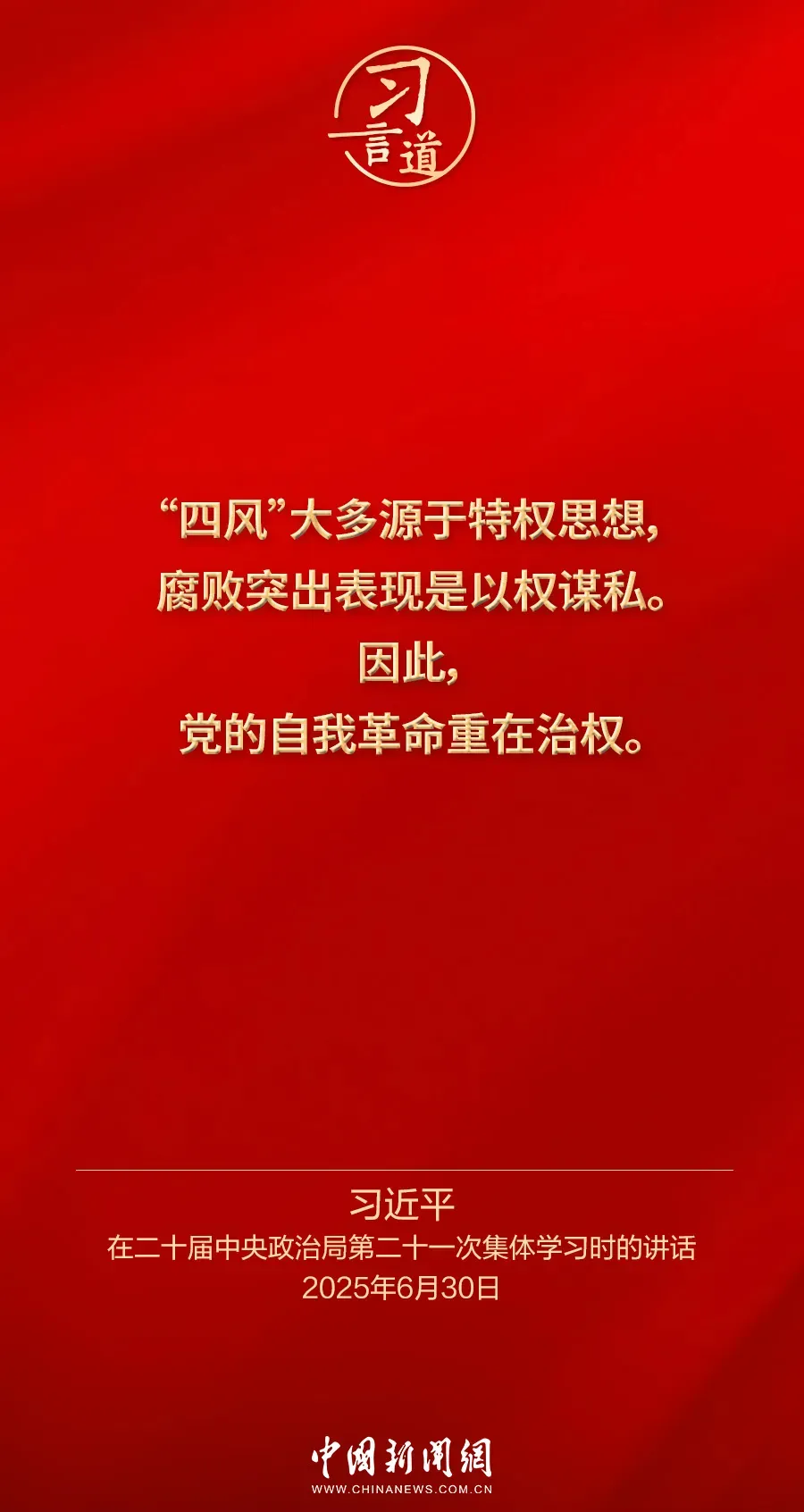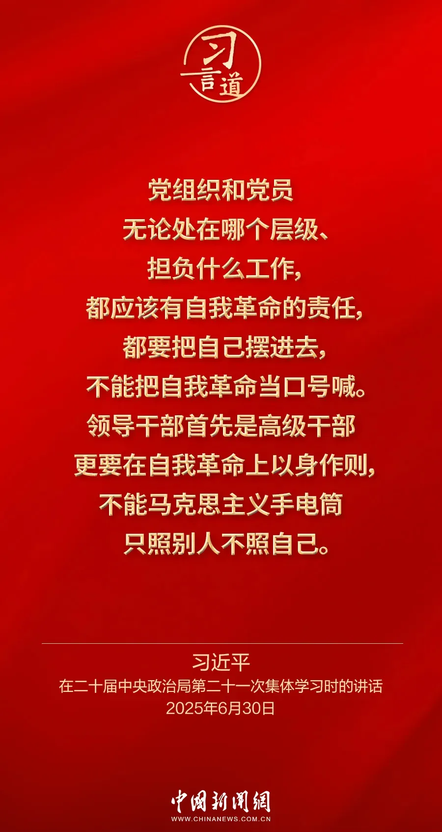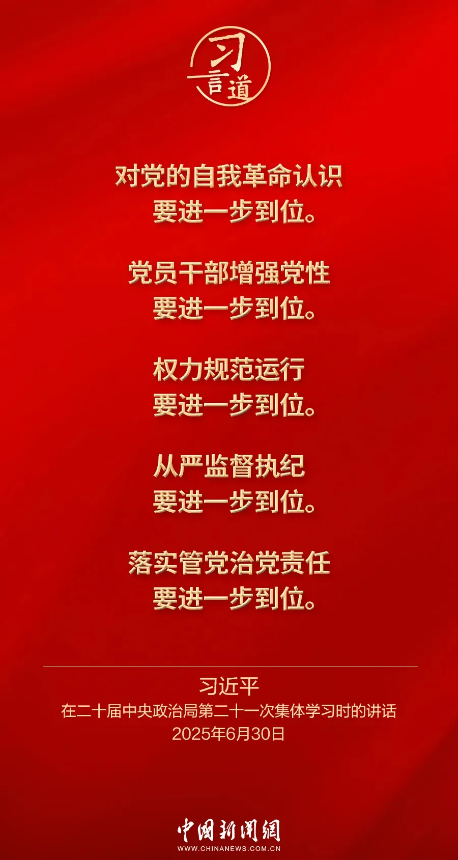 12月1日出版的《求是》杂志发表中共中央总书记、国家主席、中央军委主席习近平的重要文章《推进党的自我革命要做到“五个进一步到位”》。这是习近平总书记2025年6月30日在二十届中央政治局第二十一次集体学习时讲话的主要部分。我们梳理了习近平总书记的部分论述,邀您一起学习领悟。