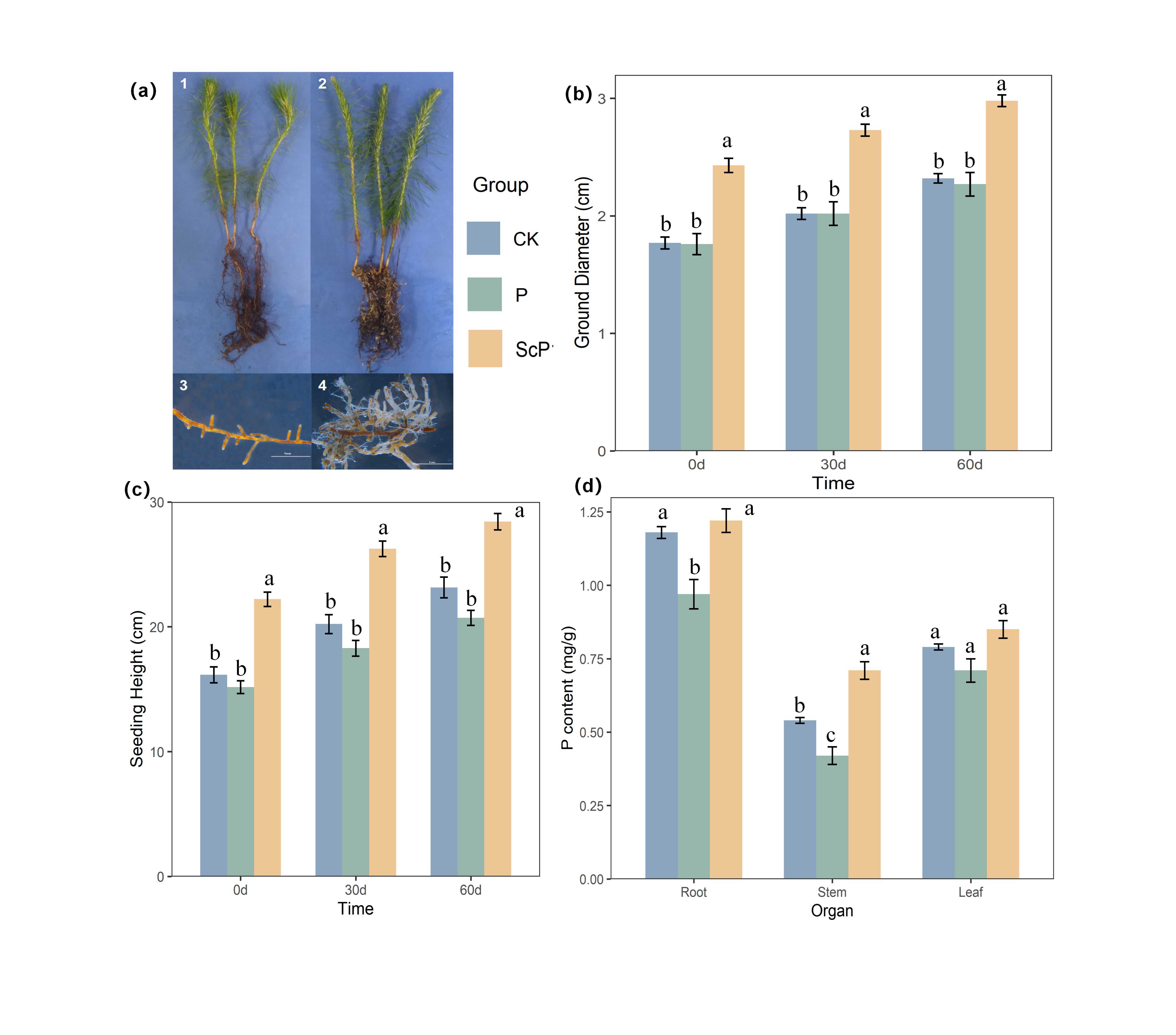 本研究首次揭示了马尾松在低磷环境下依赖外生菌根真菌,通过激活 苯丙烷-木质素代谢模块 来提高磷吸收与利用效率的分子机制。该成果不仅为针叶树种适应低磷逆境提供了新的理论依据和候选基因资源,也为培育高效利用磷的林木新品种和促进森林可持续经营提供了重要参考。