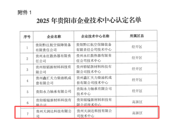 近日,2025年贵州省工业和信息化厅企业技术中心名单、2025年贵阳市企业技术中心认定名单公布,冶化所下属贵州森远增材制造科技有限公司获评2025年贵州省工业和信息化厅企业技术中心,贵州天润达科技有限公司获评2025年贵阳市企业技术中心,两家公司均属首次获评企业技术中心。
