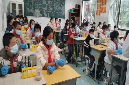 最引人入胜的是亚硝酸钠快速检测实验环节。科研人员准备了充足的试剂和材料,确保每位学生都能亲自参与其中。在科普专家实验演示后,学生们两两一组,亲手操作实验器材,并观察试剂加入后产生的明显颜色变化,以此体验科学探索的乐趣。