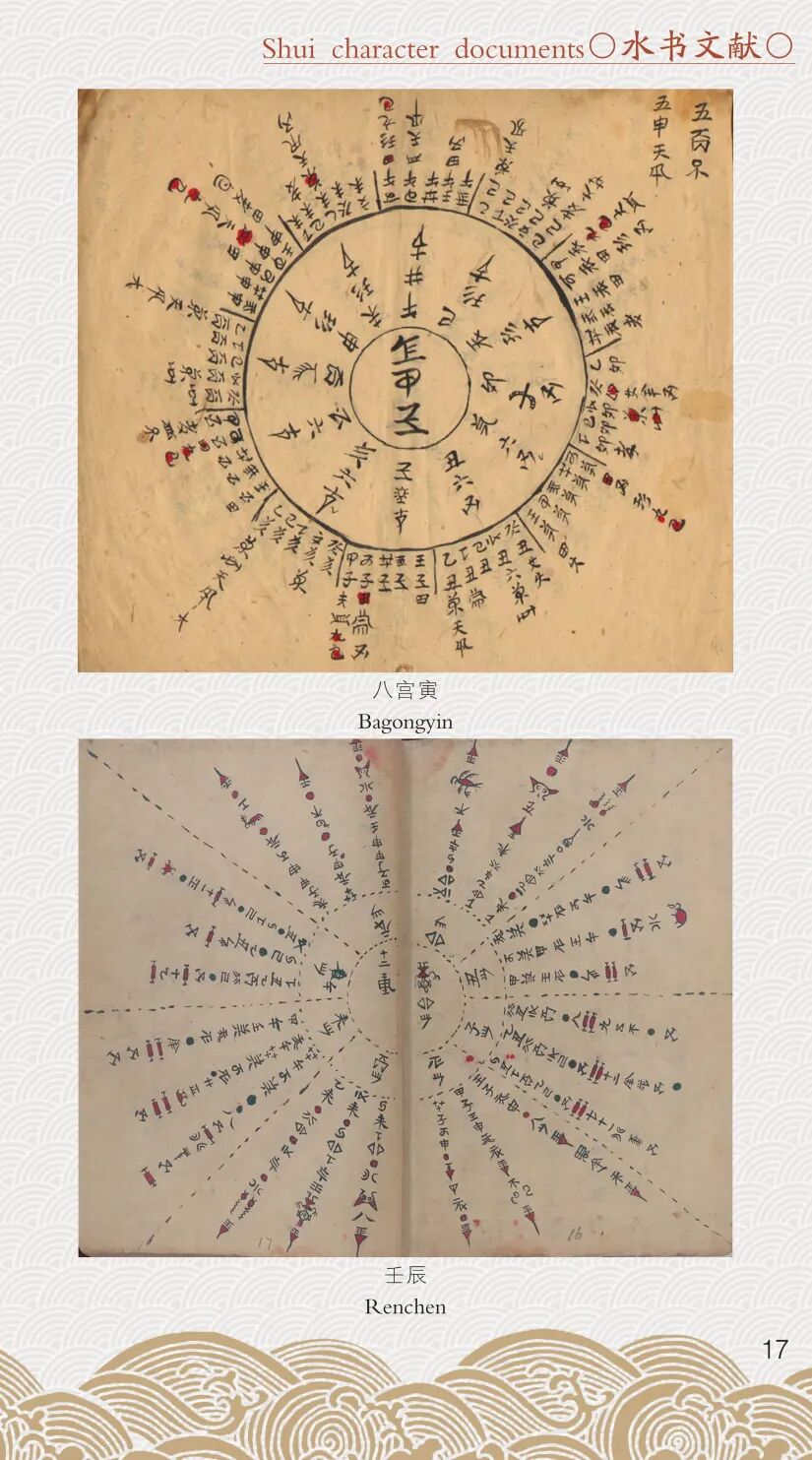 水书文献是贵州南部水族人民用象形文字和图画符号记录,用本民族语言、歌诀释读,由水书先生(智者)掌握和应用的原始典籍,约有2000个象形文字及图画符号,属于语言助记文字,其内容涉及水族天文历法、敬祖择吉、农事生产等社会生活的方方面面,是维系水族民间信仰和生产生活的记忆载体,也是水族社会治理和文化传承的重要基石。