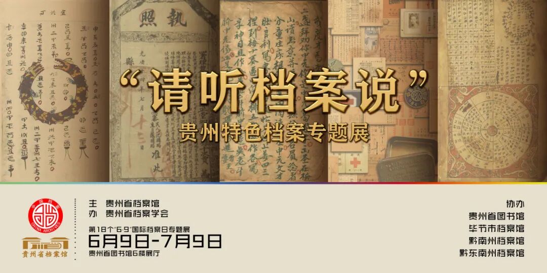 2025年6月9日是第18个国际档案日,贵州省档案馆、贵州省档案学会、贵州省图书馆等将联合举办贵州特色档案专题展。展览以“请听档案说”为主题,设于贵州省图书馆(北馆)6楼展厅,将持续至2025年7月9日。